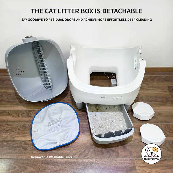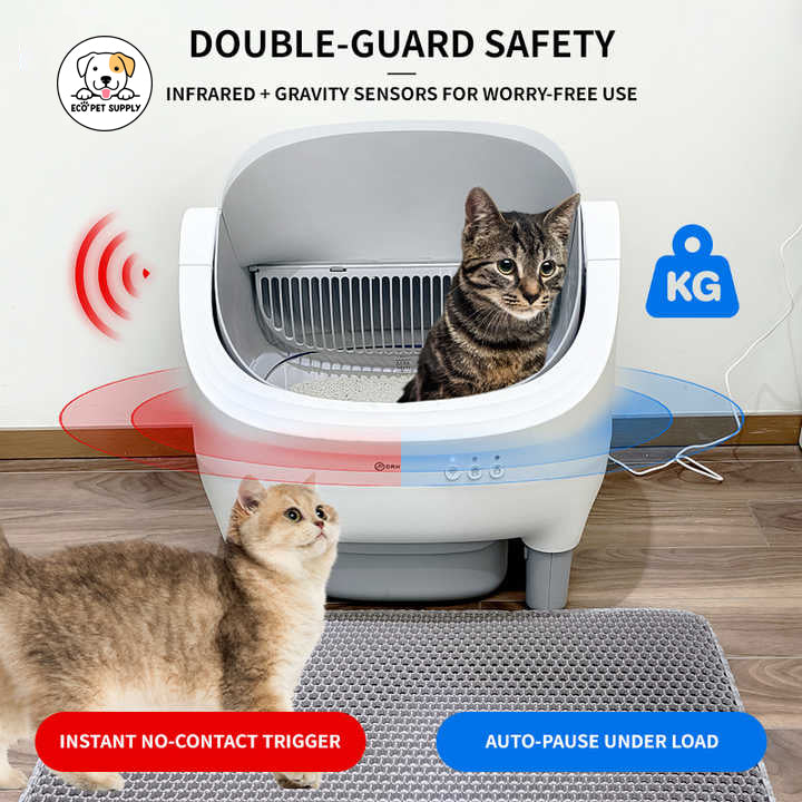 Enhance your cat's hygiene and your home's cleanliness with the Eco Pet Supply DRH Self-Cleaning Litter Box Mini – Smart Automatic Cat Litter Box with Odor Control and Easy Maintenance—the ultimate solution for effortless litter box maintenance.