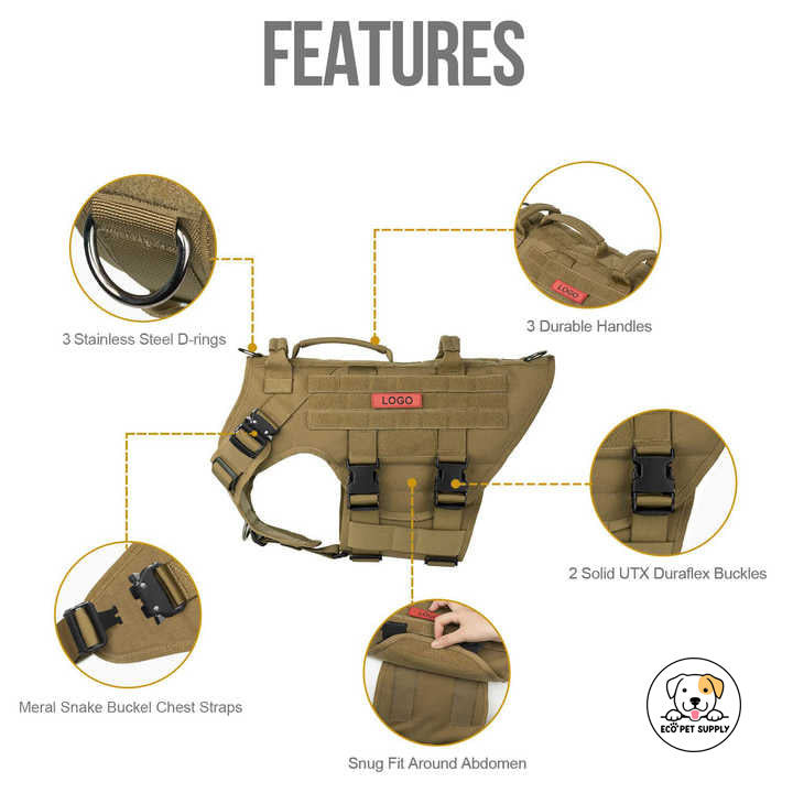 Equip your dog for tough missions with the EcoPet Supplies Tactical Dog Harness.