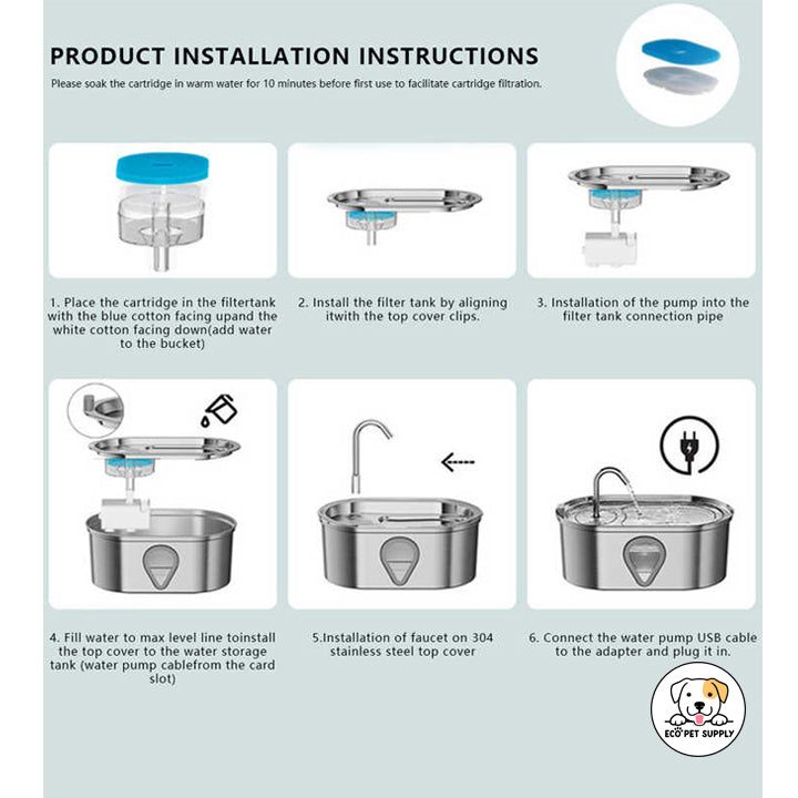 Enhance your pet's hydration experience with theEco Pet Supply Stainless Steel Pet Water Feeder – Automatic Gravity-Fed Water Dispenser with Silent Pump – BPA-Free Plastic Base – Ideal for Cats & Small Dogs —the ultimate solution for keeping your pets happy, healthy, and hydrated.